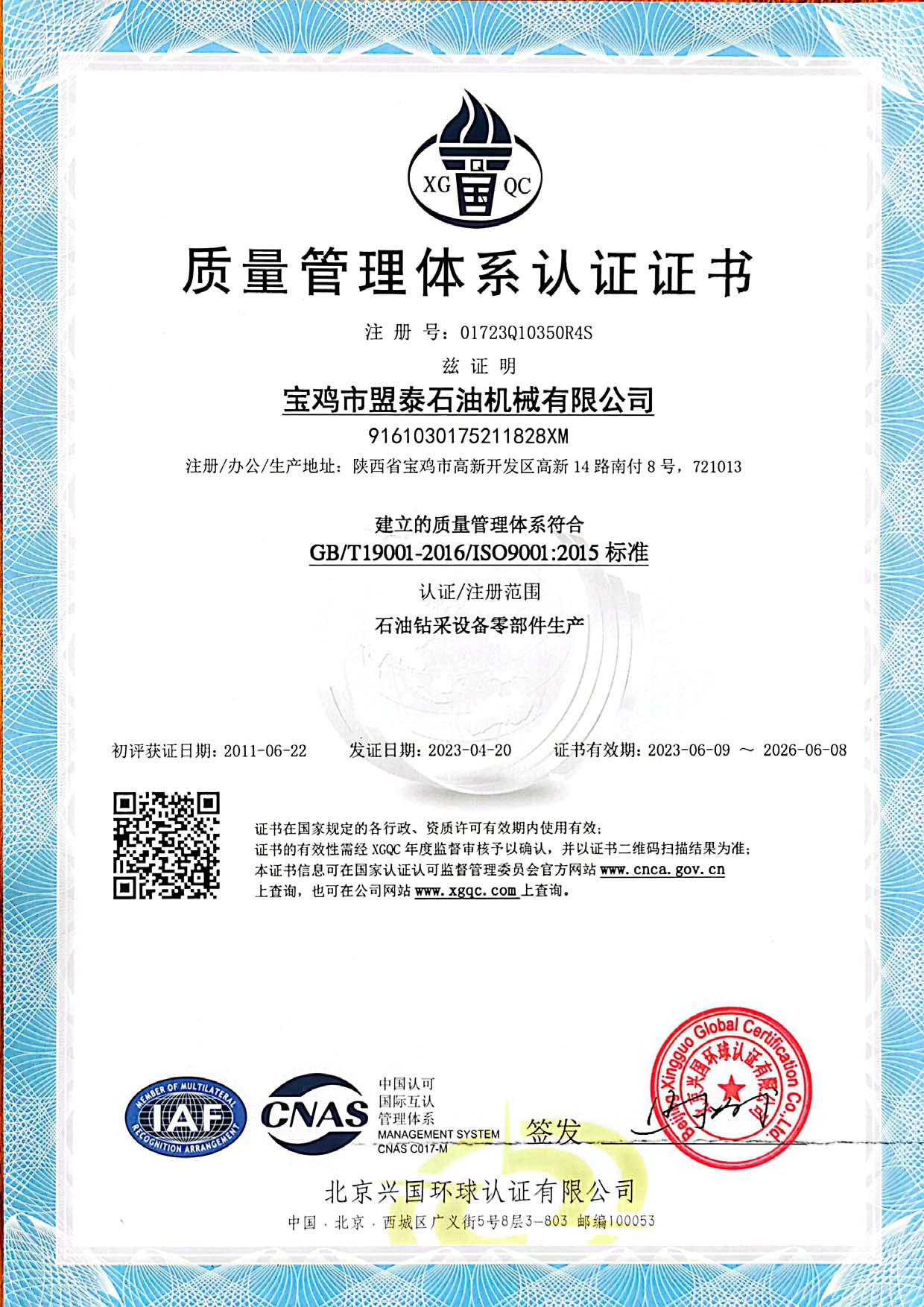 質(zhì)量管理體系認(rèn)證證書