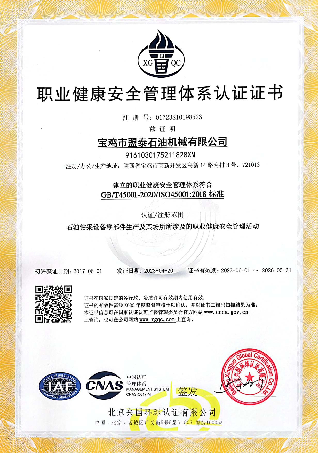 職業(yè)健康安全認(rèn)證證書